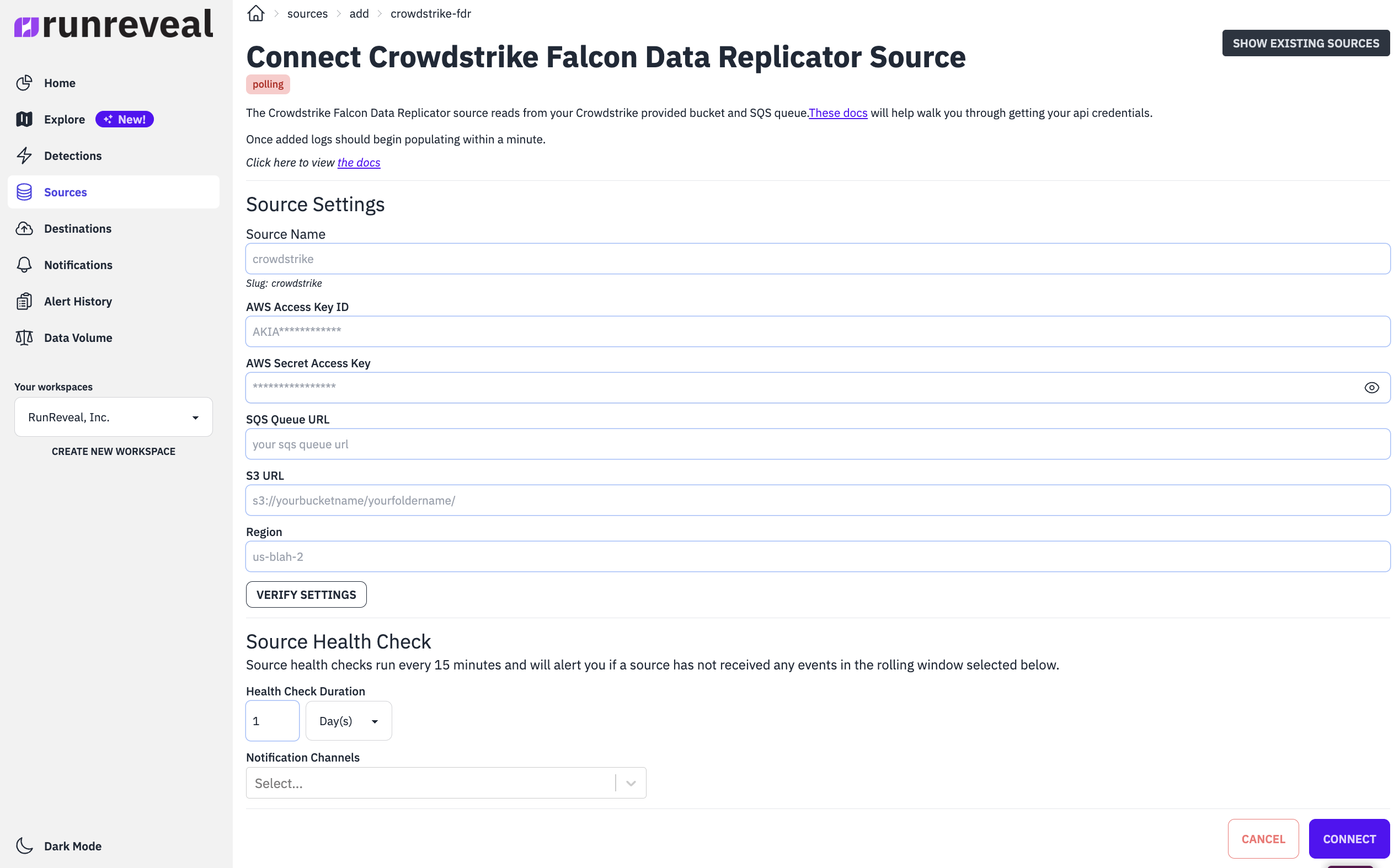 All of this information is required for the FDR source to work properly. Once provided and the source is created, your CrowdStrike data should begin flowing to RunReveal immediately.